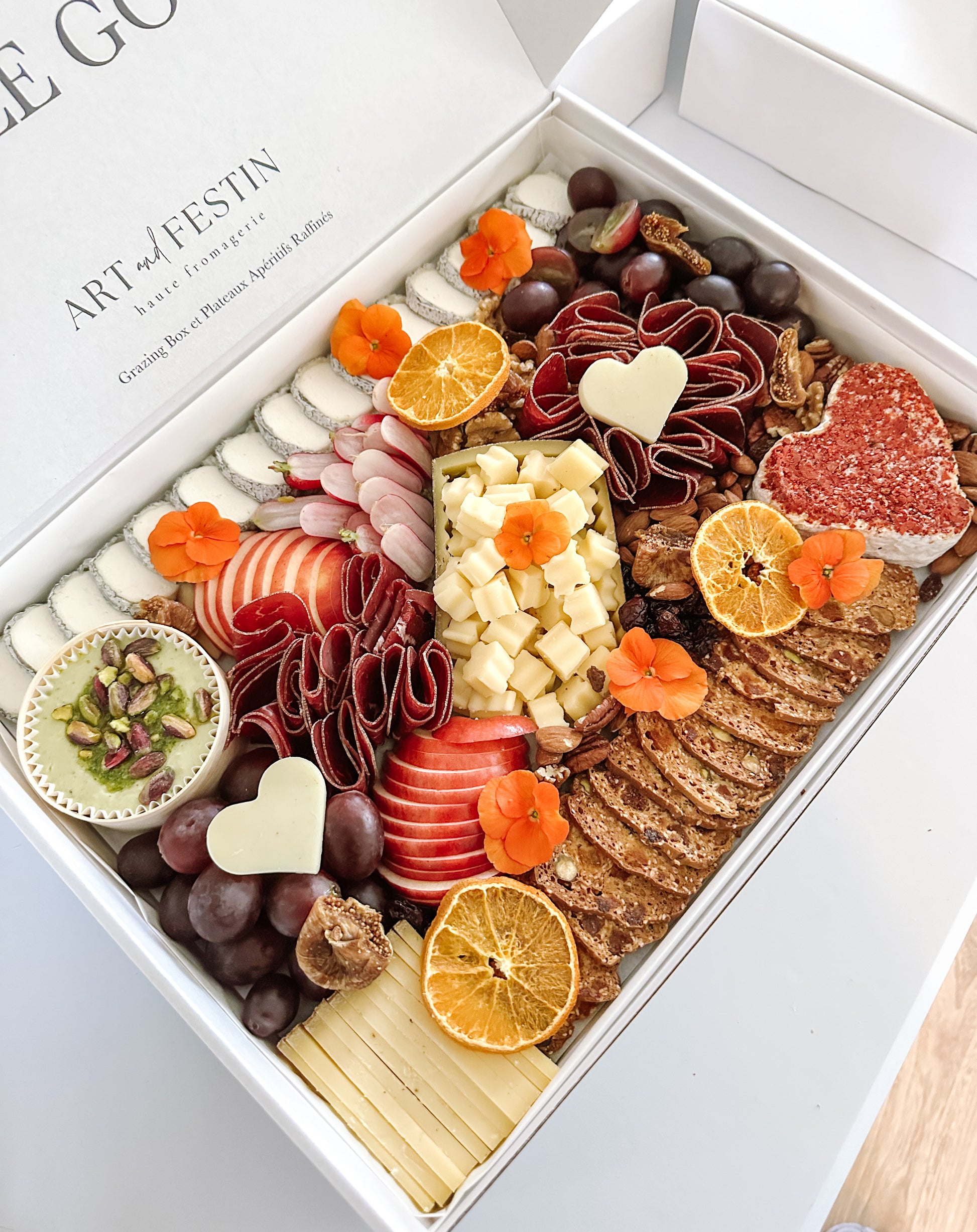 Présenté dans une box élégante (40 cm x 30 cm), il convient parfaitement à 4 à 6 personnes, pour un apéritif chic et convivial.